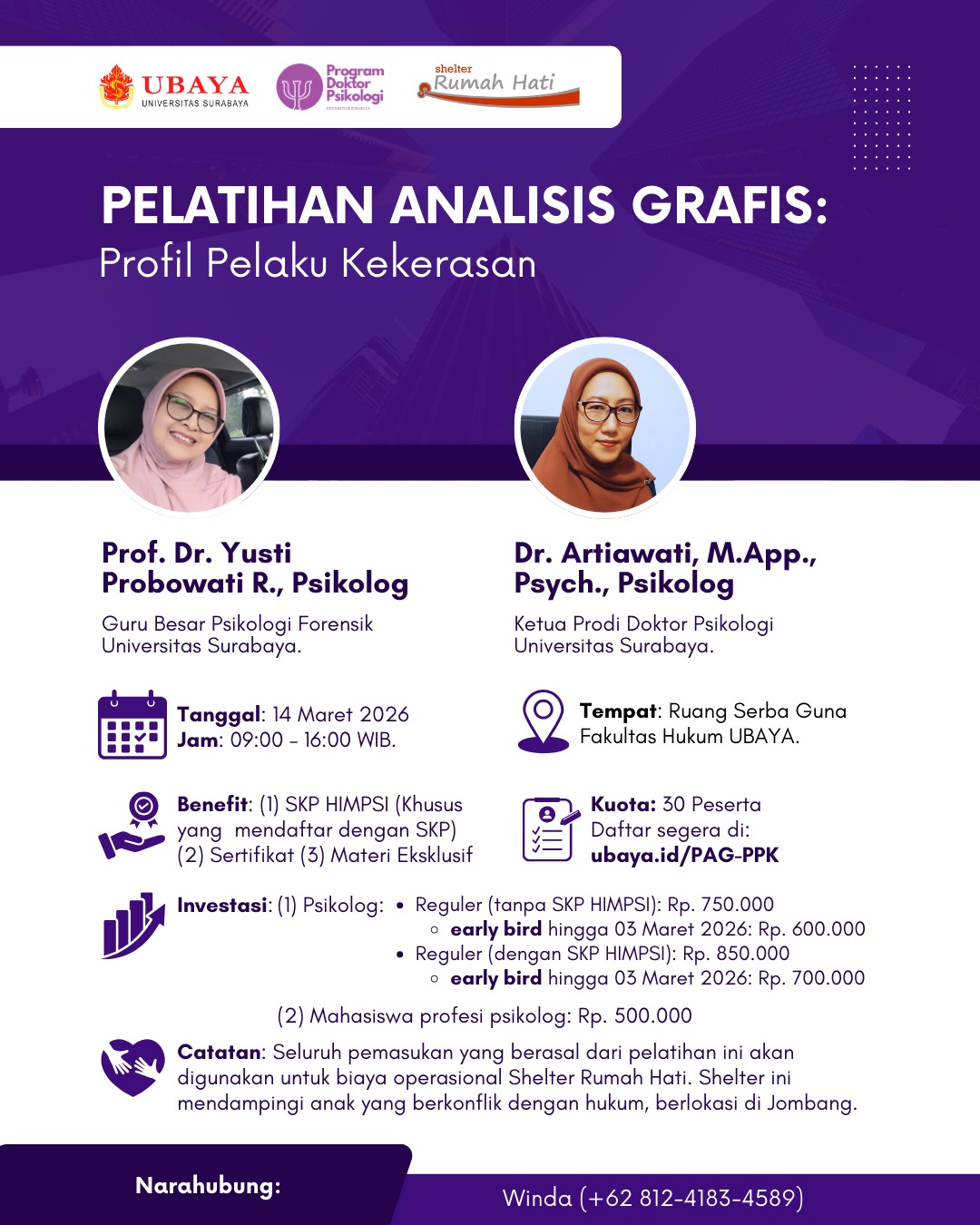 Web Ubaya Sites > > Announcement > 📢 PELATIHAN ANALISIS GRAFIS: PROFIL PELAKU KEKERASAN