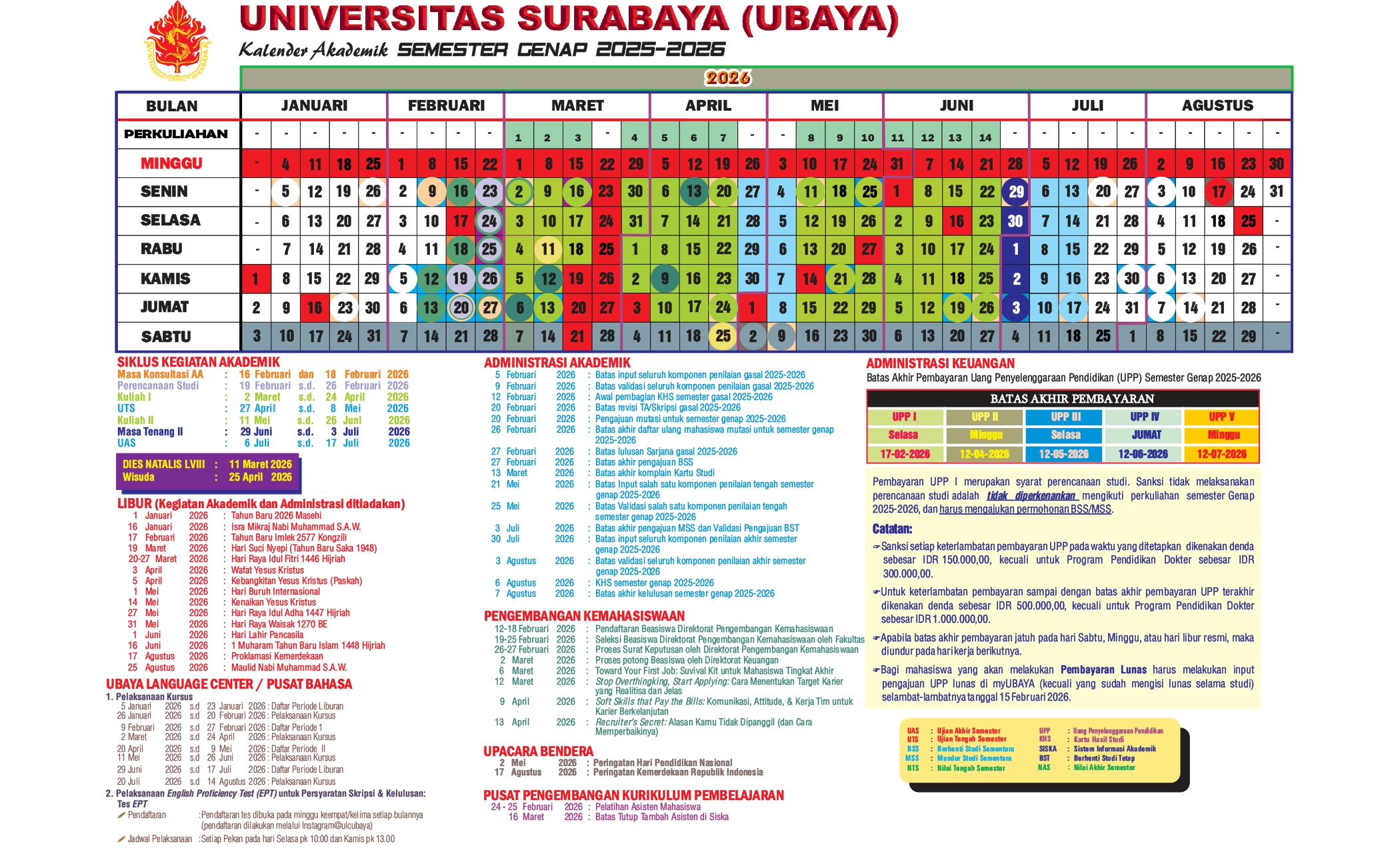 Kalender Akademik Semester Genap 2025-2026 Kalender Akademik Semester Genap 2025-2026, klik disini untuk mendownload versi PDF